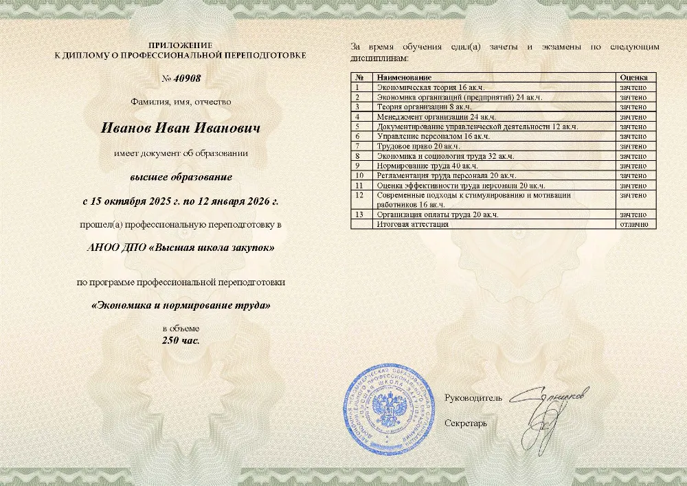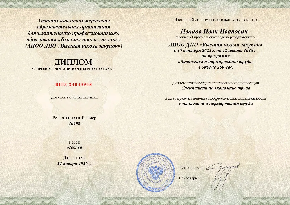 Программа профессиональной переподготовки по направлению рассчитана на 250 академических часов. Слушатели изучают четыре содержательных блока: трудовое право и смежное законодательство, экономические и финансовые механизмы работы организаций, методы нормирования и регламентации трудовых процессов, а также тарифно-квалификационные системы в связке с требованиями охраны труда. Доступ к материалам открыт из любого региона — обучение организовано дистанционно. Стоимость курса — минимальная на рынке: результаты сравнительного анализа подтверждают отсутствие более доступных предложений среди учебных центров. Итоговая проверка знаний сводится к тесту из 10 вопросов — время не ограничено, пересдавать можно сколько угодно. Писать рефераты или готовить дипломные работы не нужно. Документ о профпереподготовке оформляется за один день, одновременно с этим сведения передаются в ФРДО. Для слушателей в Махачкале и других городах предусмотрен свободный темп освоения материалов.
