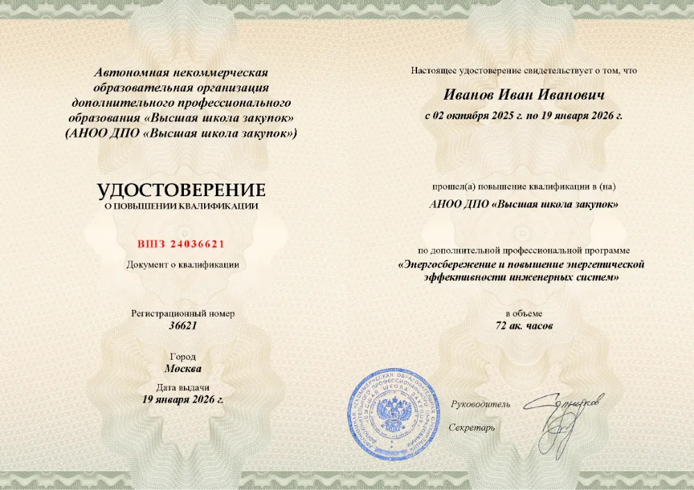 Специализированная программа повышения квалификации, включающая 72 академических часа материала, предназначена для инженеров, энергоменеджеров и руководителей, нацеленных на оптимизацию энергопотребления в организациях. Заниматься можно полностью удаленно в Махачкале, совмещая учебу с профессиональной деятельностью. Курс охватывает современные методики энергетического аудита, принципы энергоменеджмента, а также цифровые технологии для снижения затрат на содержание инженерных систем зданий и промышленных объектов. Итоговая аттестация проходит в формате несложного теста (до 10 вопросов) без ограничений по времени и количеству попыток (99% успешных сдач с первого раза). Рефераты и защиты исключены. Согласно анализу цен, это самый дешевый курс среди аналогичных программ. Удостоверение выдается за 1 день, а запись в ФРДО появляется в день выдачи документа.
