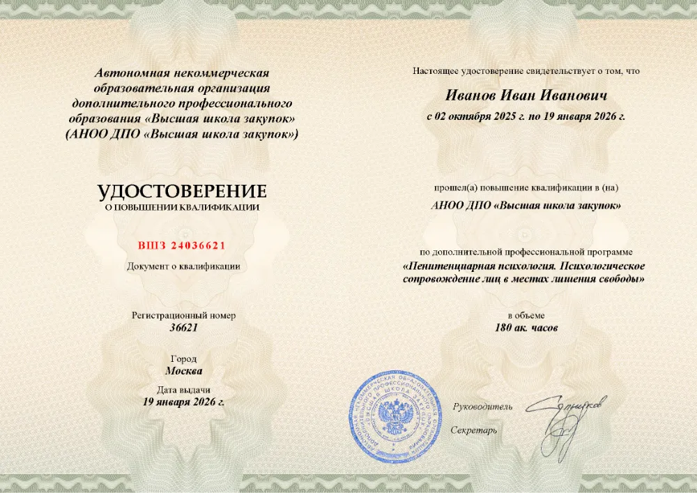 Курс повышения квалификации объемом 108 академических часов разработан для психологов, спасателей, работников МЧС и специалистов, оказывающих помощь в условиях сверхсильного стресса. Обучение организовано дистанционно в Махачкале. Учебный план охватывает юридические аспекты работы в ЧС, методы психологической диагностики, терапию ПТСР и психологию утраты. Слушатели изучают алгоритмы экстренной психологической помощи и специфику взаимодействия с большими группами людей в кризисных ситуациях. Проверка знаний максимально упрощена: онлайн-тест до 10 вопросов без лимита времени и количества попыток (99% успешно сдают с первого раза). Никаких рефератов и защит работ. Актуальный мониторинг подтверждает, что это наиболее бюджетный вариант обучения в своей нише. Удостоверение оформляется за 1 день, а сведения в реестр ФРДО заносятся непосредственно в день выдачи.
